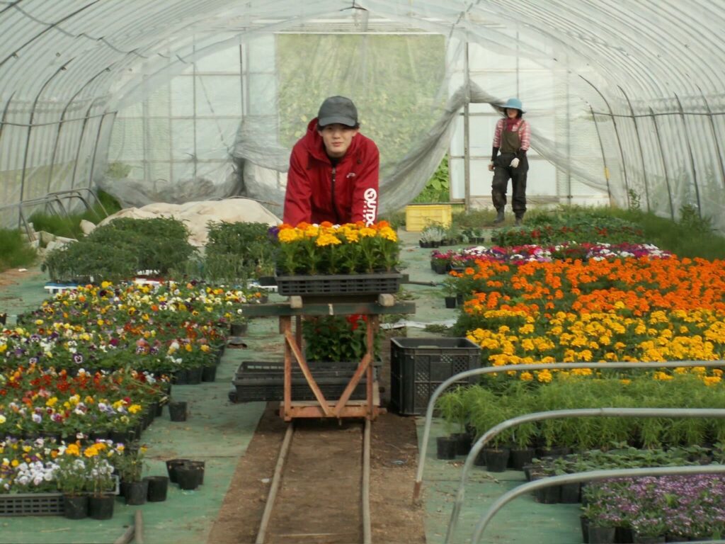 「農業のサイクルで言うと、5月から6月にかけてが種植えの時期で、9月から10月が収穫の時期になります。特に収穫期の秋は一番忙しいですね。人手が必要な時は親戚に手伝いに来てもらいますが、基本的には募集はかけていません。作物の世話は季節ごとですが、お花は年中手入れが必要なので、常に何かしらの作業があります。」